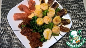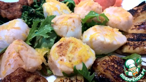 Готовим гребешки. Я использовал су вид, но можно и просто пожарить на сковороде. В этом случае жарить надо ближе к подаче - чтобы они не остыли (смотри дальнейшие шаги).