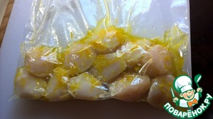 Снимаем цедру с лимона. Половину смешиваем с 1 ст. л. оливкового масла и белым перцем. Оставшуюся цедру откладываем на потом