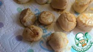 Когда гребешки готовы, удаляем их со сковороды (чтобы остановить процесс жарки) и выкладываем на бумажное полотенце, чтобы стекло лишнее масло.