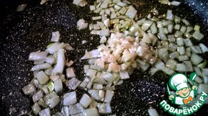 Когда лук готов, добавляем чеснок и прогреваем секунд 30