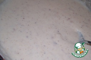 5. итак, на другую сковороду кладём масло, растопить, добавить муку, перемешать, поджарить минут 2, и тонкой струйкой вливаем молоко, и одновременно помешивая, посолить, поперчить.