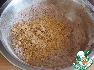 Муку просеять с разрыхлителем и какао.