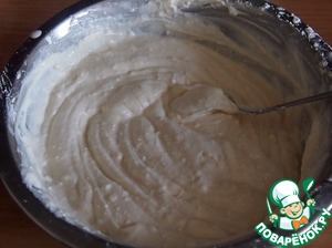 Мягкий творог без крупинок рамешать венчиком со сливками (тут можно использовать менее жирные сливки).