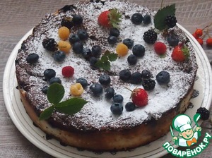 Остывший пирог достать из формы, посыпать сахарной пудрой и украсить ягодами черники, листиками мяты и еще всем, что Бог пошлет. -