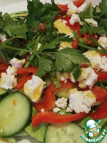Хочу предложить приготовить быстрый легкий салат из свежих огурцов, феты и сладкого перца. Салат очень простой, но в нем оригинальная заправка, получилось сочно, ароматно, пикантно. Фету можно заменить брынзой.