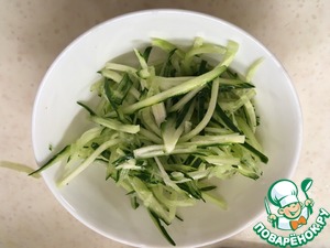 В то время пока обжариваются креветки, моем и натираем огурец на крупной терке или же на терке-соломкой. В этот раз мне попался огурчик с грубой кожицей и я поймала себя на мысли, что лучше бы нужно было почистить ее, чтобы не портила нежный вкус супа.