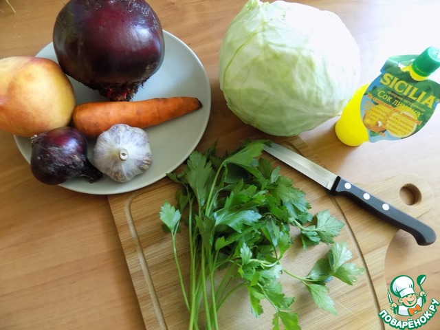 Сейчас пора молодой свёклы, моркови, лука, чеснока и разных огородных культур. Я вам предлагаю необыкновенно вкусный, лёгкий, сочный салат с огородными овощами и спелым сладким персиком. Салат заправлен пикантной заправкой из оливкового масла с виноградным уксусом и лимонным соком SICILIA. Чтобы он был поострей я добавила в заправку ещё жгучий красный перец. Заходим и пробуем!