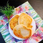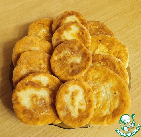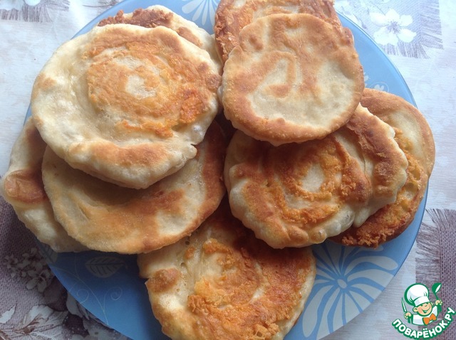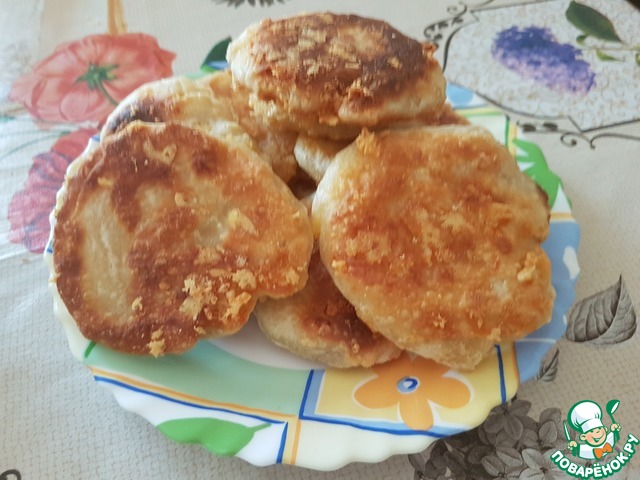 Жарить лепешки в небольшом количестве растительного масла. Масло должно быть очень хорошо разогретым, но не кипеть. Огонь активный (у меня на печке 6 делений мощности, жарю на 5)