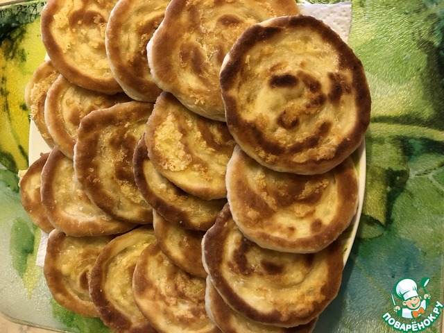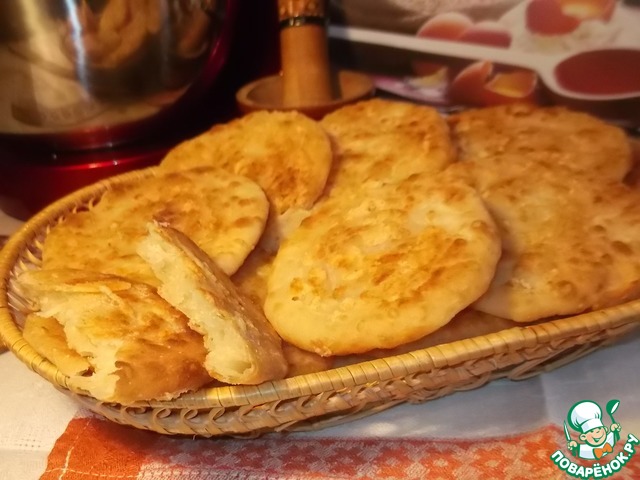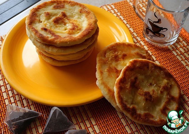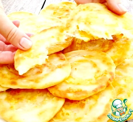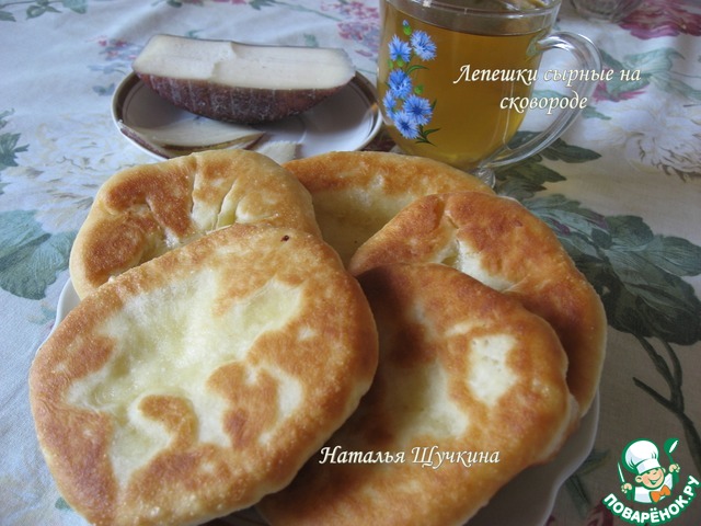Хрустящие, легкие, воздушные лепешки с сыром. Готовятся просто и быстро. На завтрак с чаем или кофе, со свежим салатом на перекус, со сметаной, да и просто так похрустеть перед телевизором - в любом случае идут на "ура". Конечно, особенно хороши эти лепешки горячими, с пылу-с жару, но и остывшими очень и весьма недурны. Правда, у нас такие лепешки остыть не успевают... Угощайтесь, это вкусно!