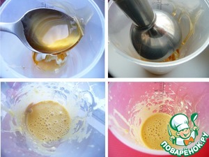 Влить растительное масло, взбить, добавить соль, перец, сметану. Взбить.