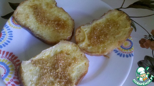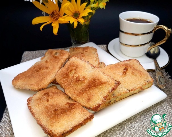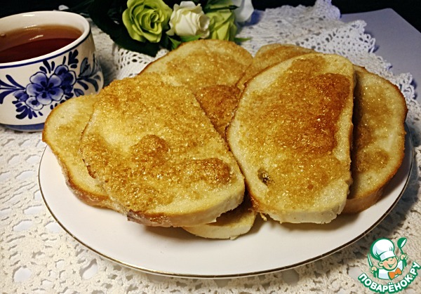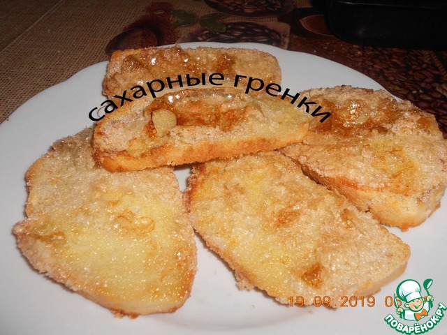 Французское название pain perdu («потерянный хлеб») означает способ вернуть несвежий или иным образом «потерянный» хлеб. Лучший способ утилизации несвежего хлеба - различного вида гренки и тосты, которые превращают "потерянный хлеб" в pain doré «золочёный хлеб» или «поджаристый хлеб». А вы любите сахарные язычки? Тогда я покажу вам, как из несвежего хлеба можно очень быстро сделать сделать сахарные гренки, которые вполне можно подать к чаю или кофе.