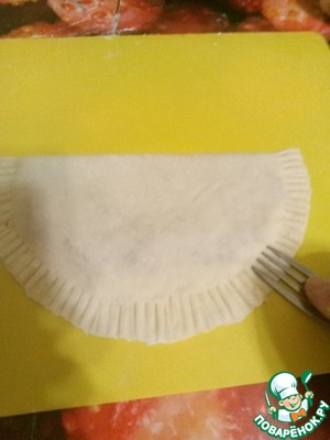 ... и пройдитесь по краю вилкой. Получается красиво и меньше шансов "расклеиться".