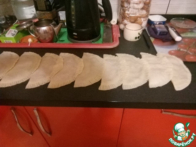 В итоге почти половина фарша осталась, а из 12 частей уж больно мелкие чебуреки вышли.