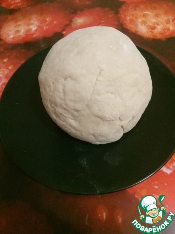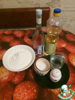 300 г. муки и соль перемешать, добавить сахар и водку. Добавляем кипяток и быстро замешиваем ложкой, пока тесто не начнет формироваться в комок. Перекладываем на стол и вмешиваем остальную муку. Тесто должно быть как пластилин, достаточно крутое. Накрывает пленкой - и на 20 минут отдыхать...