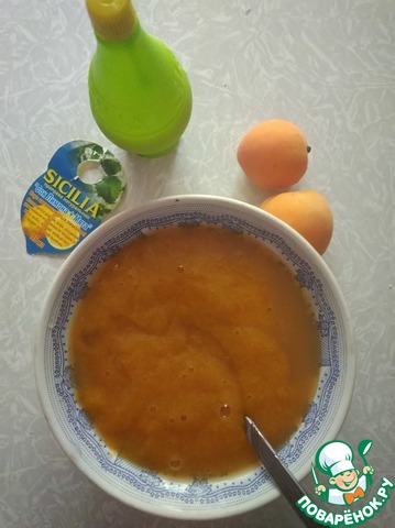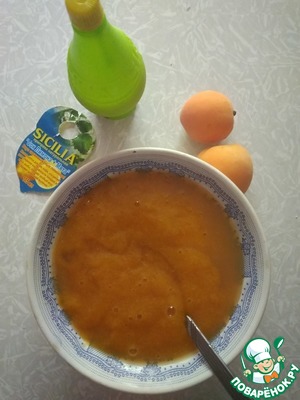 Свежие абрикосы пробить блендером с лимонно-мятным (лимонным) соком. Можно взять готовое абрикосовое пюре без сахара.