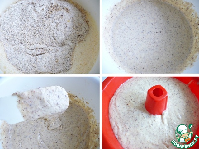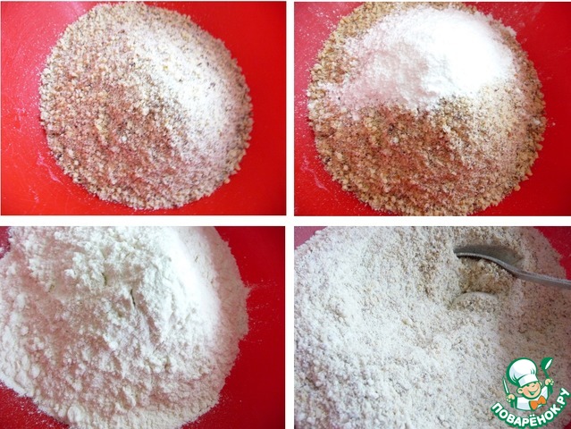 В отдельной миске смешать молотые орехи, муку и разрыхлитель.