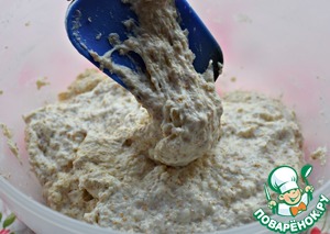 Тесто получается липкое, тягучее, как на очень густые оладьи.
