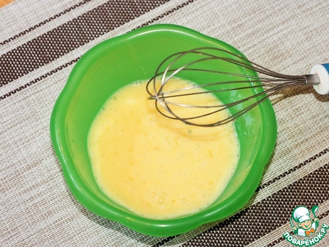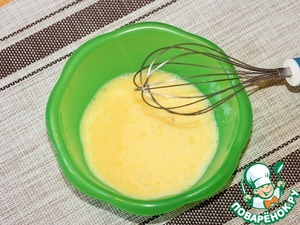 7. Взбиваем венчиком: куриные яйца + 1 яичный желток с щепоткой соли.