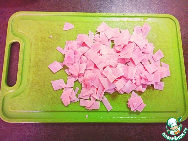 - Ветчина (свиная нежирная, лучше в ломтиках) — 100 г