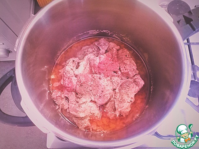 В любом средстве для тушения (пароварка, казан, скороварка,...) разогреваем растительное масло и обжариваем на нём лук.