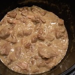 Выкладываем помытое, очищенное и нарезанное крупными кусками мясо.