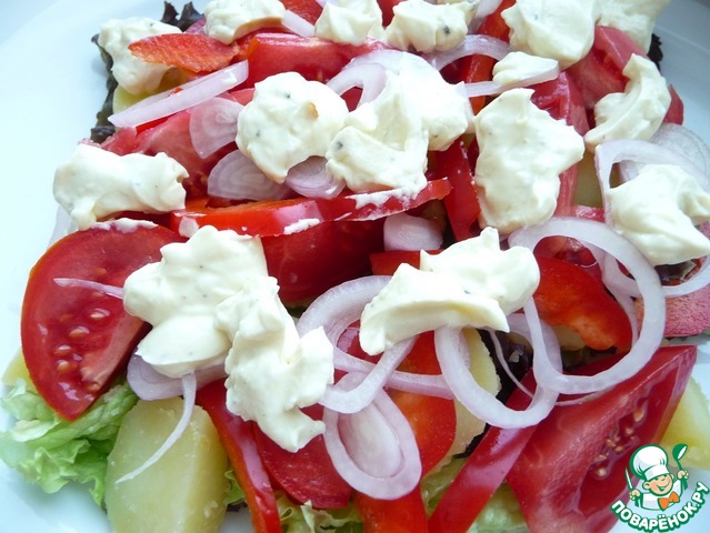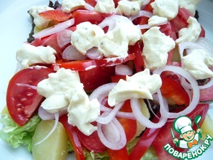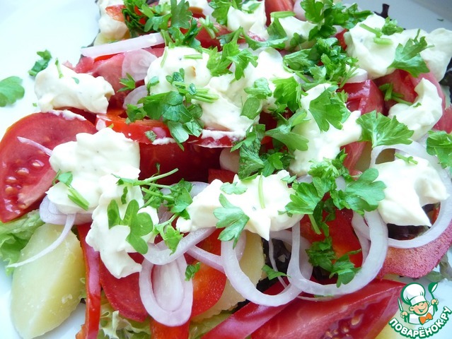 Заправить салат соусом.