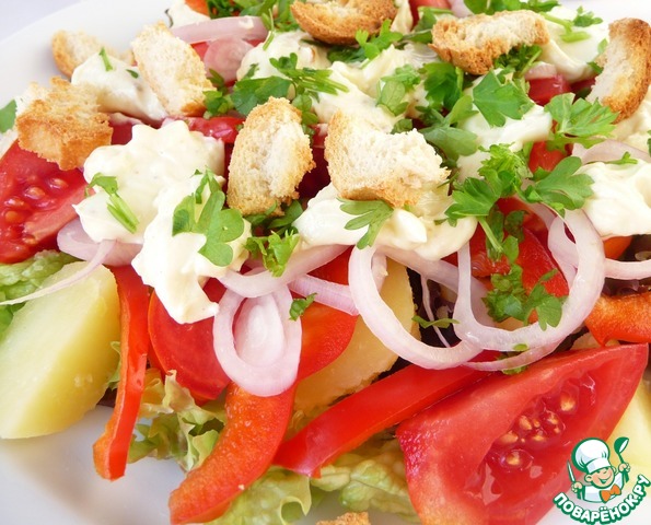 Рецепт «Салат с помидорами и крутонами»: