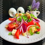 Салат с помидорами и крутонами