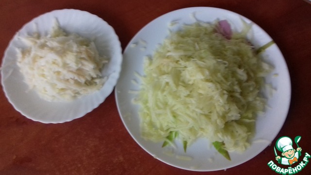 Кабачки яблоки очищаем от кожуры и семечек и натираем на крупной терке. Кабачки солим.