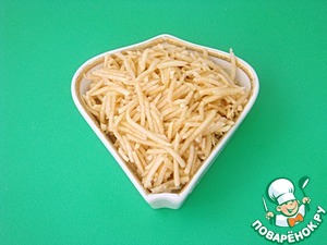 Морковь очистить и натереть на терке для корейской моркови или нарезать мелкими брусочками.