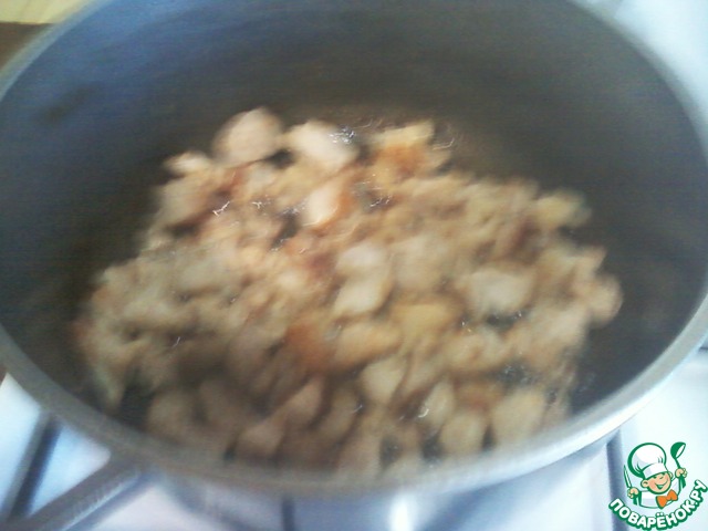 Свинину (с жирком) нарезать небольшими кубиками 1,5х1,5 см. В казан налить масло, добавить мясо и обжарить до состояния золотистой корочки. Лук нарезать кубиками и добавить в мясу. Обжаривать пока лук не приобретет легкий золотистый цвет.