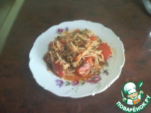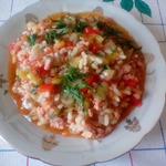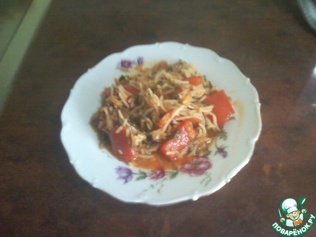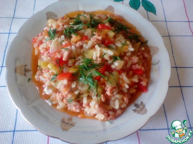 Это блюдо возникло спонтанно. Сегодня утром шли с моря. Муж захотел фаршированный перец. Но когда в 10 часов утра в Одессе 36 градусов, стоять у плиты полдня совсем не хотелось. Вот и возникла идея по мотивам ленивых голубцов. Кстати их я делаю также, только вместо перца нарезаю капусту квадратиками.