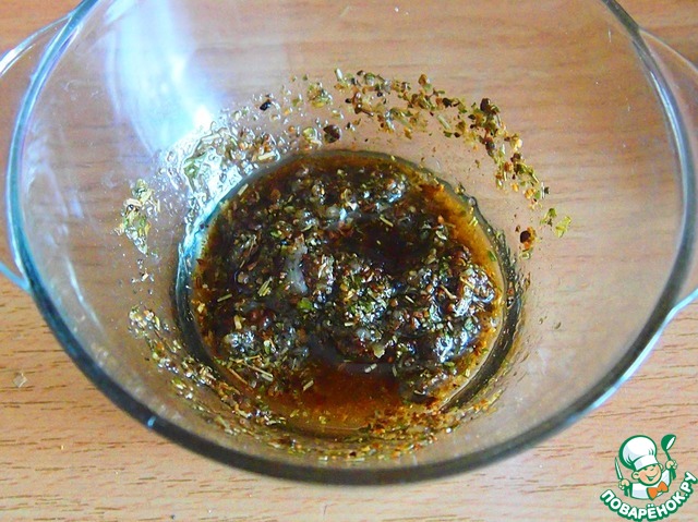 В ступке растолочь душистый перец и сухие травы - розмарин и тимьян.