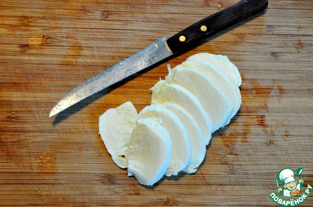 Моцареллу нарежьте кружками толщиной 5 мм.