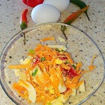Салат незатейливый, легкий такой! Он нежный, яичный, еще овощной! И все сочетаться в нем будет прекрасно! Попробуем блюдо совсем не напрасно!