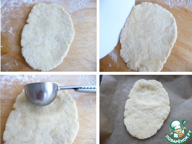 В верхней части овала с помощью ложки для мороженого придавить тесто,