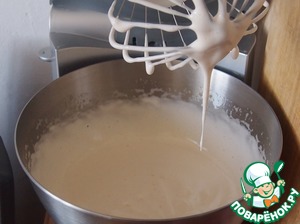Яйца взбить с сахаром, ванильным сахаром и щепоткой соли до получения светлой тягучей массы.