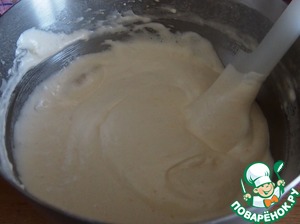 Добавить просеянную муку, осторожно размешать лопаточкой.