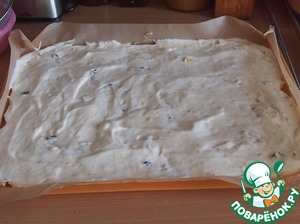 На яблоки вылить тесто, разровнять по поверхности яблок.