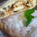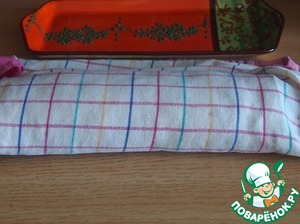 С помощью полотенца свернуть рулет и перекатить его на блюдо.