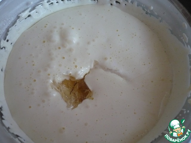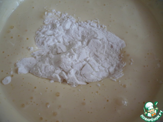 Продолжая взбивать, в смесь ввести картофельный крахмал.