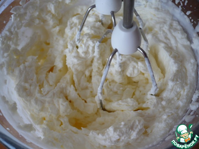 В отдельной миске, взбейте хорошо охлажденные сливки.