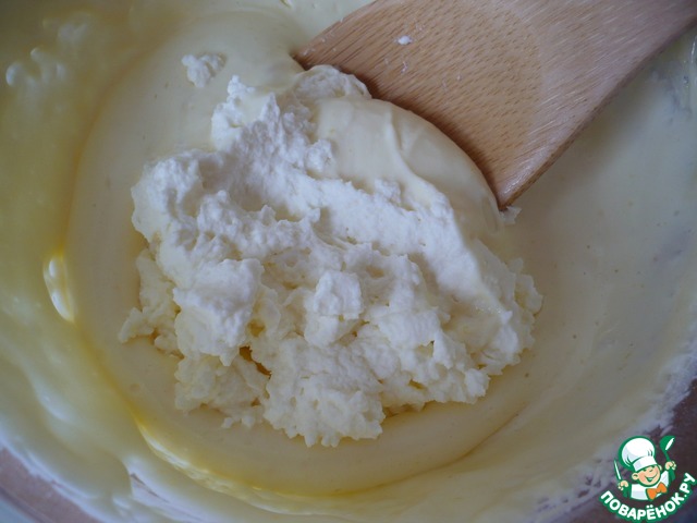 После того, как остынет крем, добавьте взбитые сливки и аккуратно перемешайте деревянной ложкой.