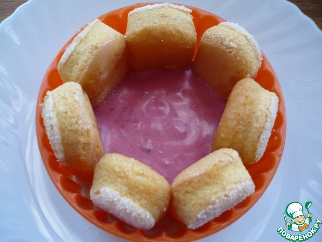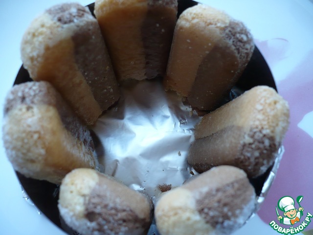 Противень застелить пергаментной бумагой или фольгой. Поставьте на него кулинарные кольца. По кругу кольца выложить приготовленное печенье "савоярди".