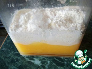 • Затем смешаем муку с разрыхлителем, ванилином и все это добавим к яично-сахарной субстанции. Тесто готово!