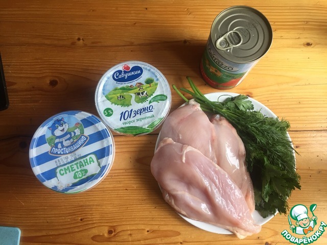 Ингредиенты для «Куриные рулетики с томатами и творогом»: