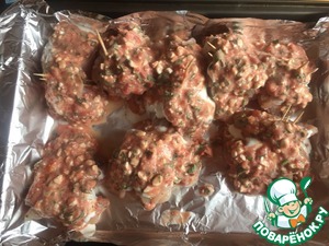 Если начинка еще осталась, то выложить ее сверху на рулетики. Поставить запекаться на 40 минут в разогретую до 180 духовку.