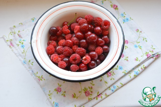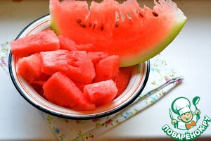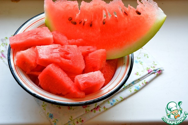 Пришлось готовить с небольшими отступлениями. Вишня закончилась в магазинах, малина очень дорогая, поэтому взяла 625 гр арбуза и 125 гр малины.