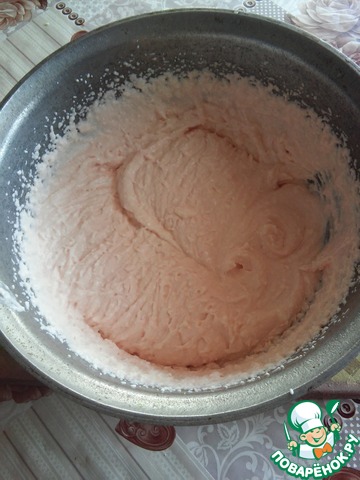 Затем соединить обе массы, слегка взбить миксером. Количество сахара регулируйте на свой вкус. Вот такой получился красивый крем.