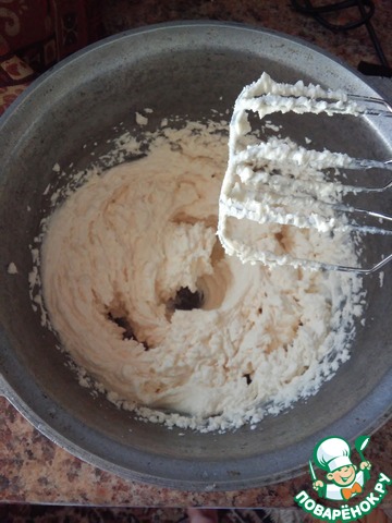 С кремом я импровизировала))) Главное, что он получился очень вкусным и совсем не приторным. Итак, творог (у меня домашний, не сухой) взбить бледером вместе с йогуртом до однородной массы. -